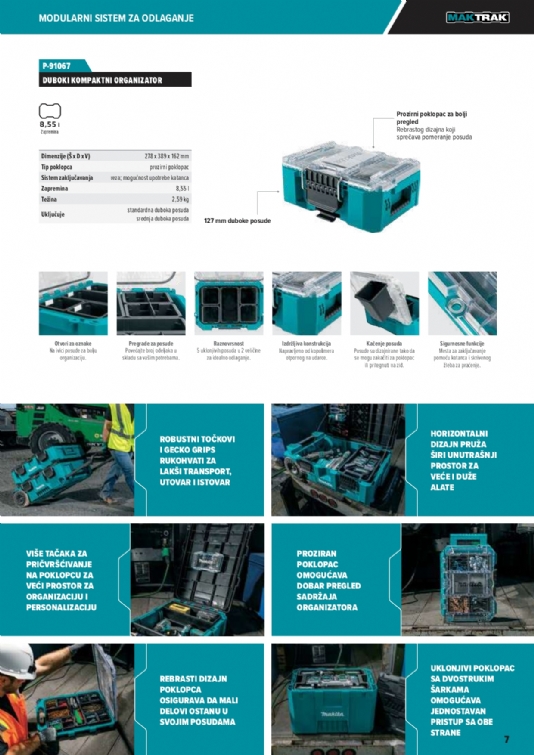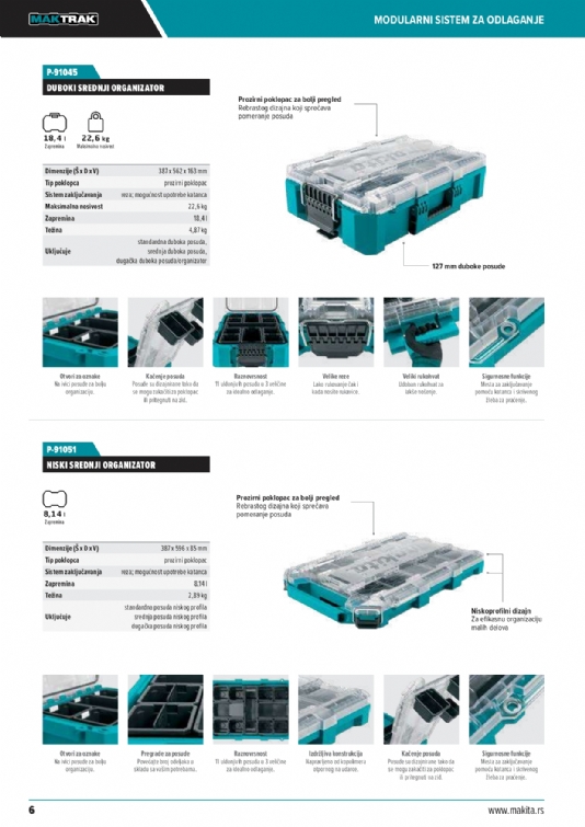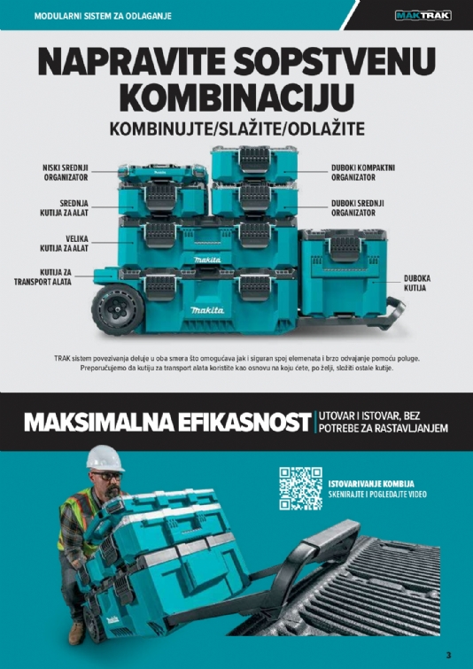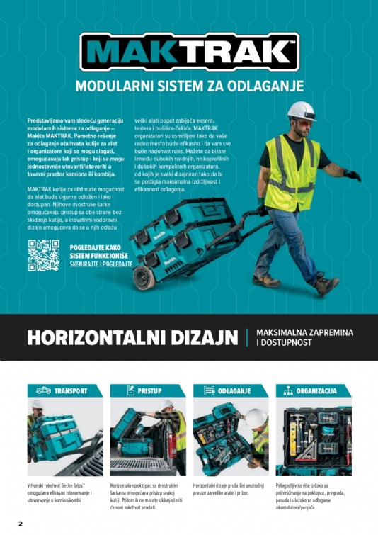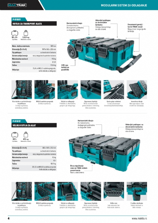 Predstavljamo vam sledeću generaciju modularnih sistema za odlaganje – Makita MAKTRAK. Pametno rešenje za odlaganje obuhvata kutije za alat i organizatore koji se mogu slagati, omogućavaju lak pristup i koji se mogu jednostavnije utovariti/istovariti u tovarni prostor kamiona ili kombija.